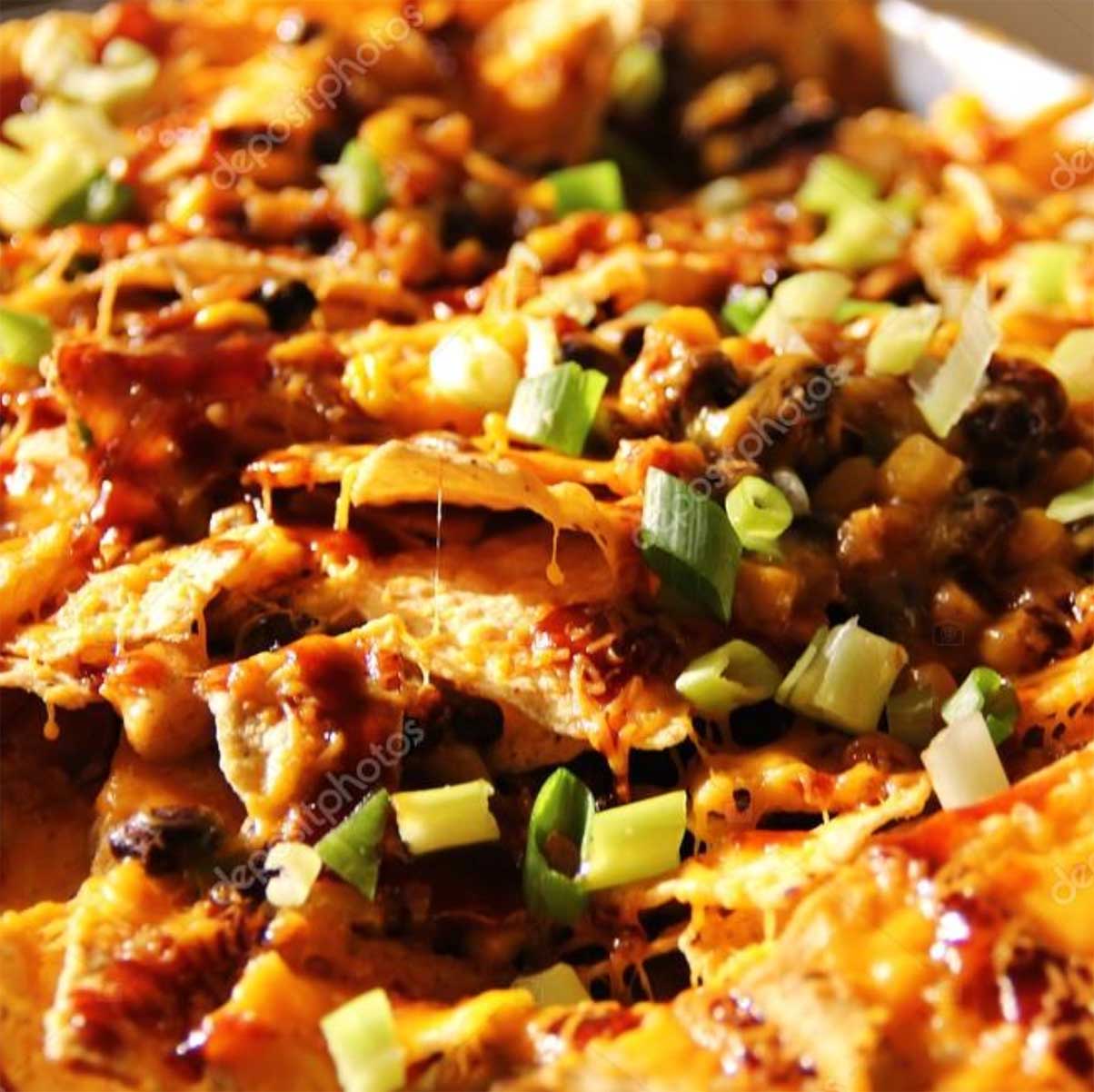 Our crispy warm nachos topped with cajun spiced shrimp with cilantro, onions, jalapenos, sliced avacado and queso